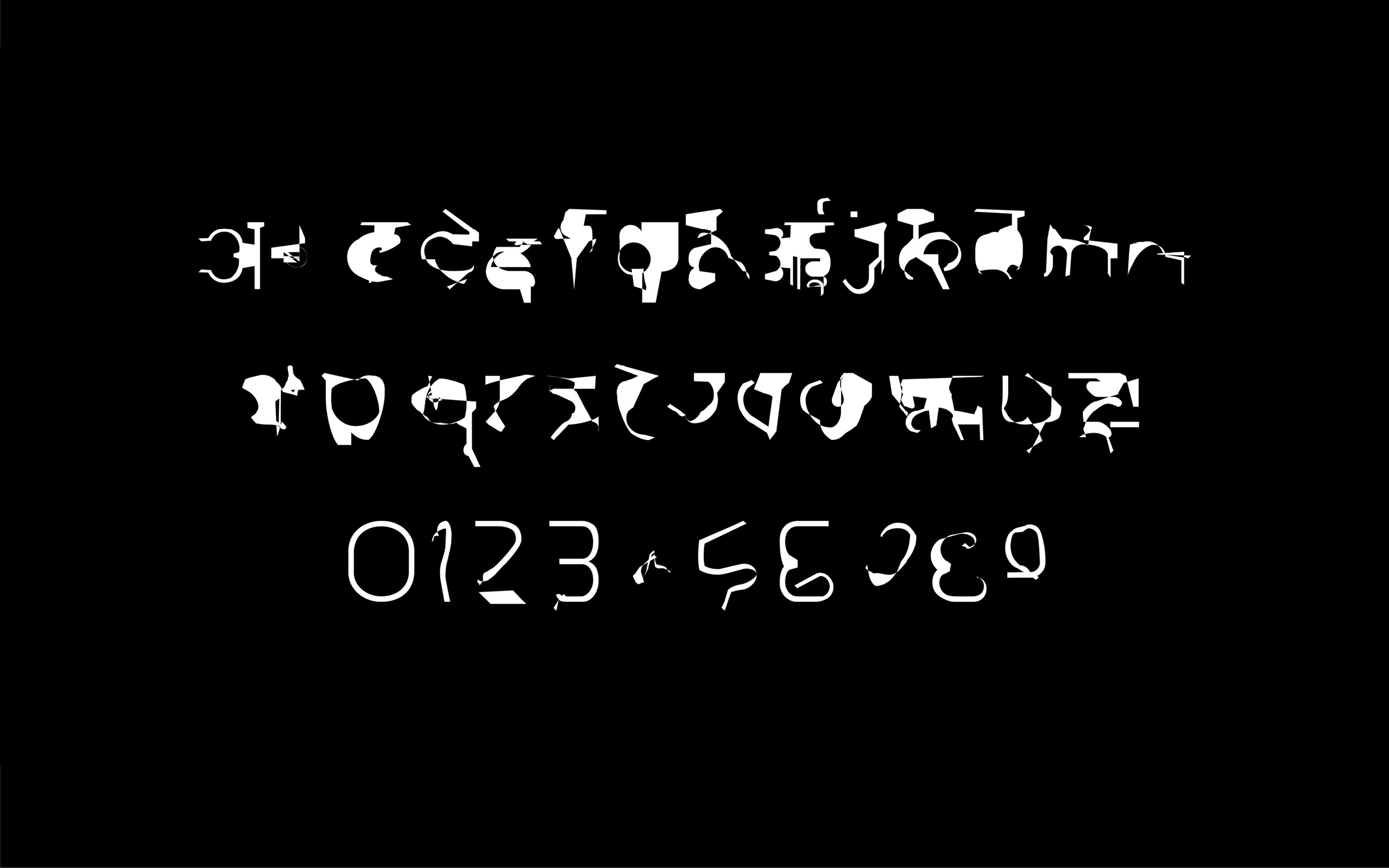 Endi is a variable typeface exploring the notion of translation between languages through form. It varies from Latin to Devanagari, which represent different font weights.